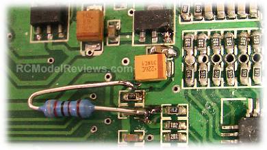 Now comes the tricky part, installing the resistor that fools the transmitter into thinking that our new 2-cell lithium battery is actually an 8-cell NiMH one.